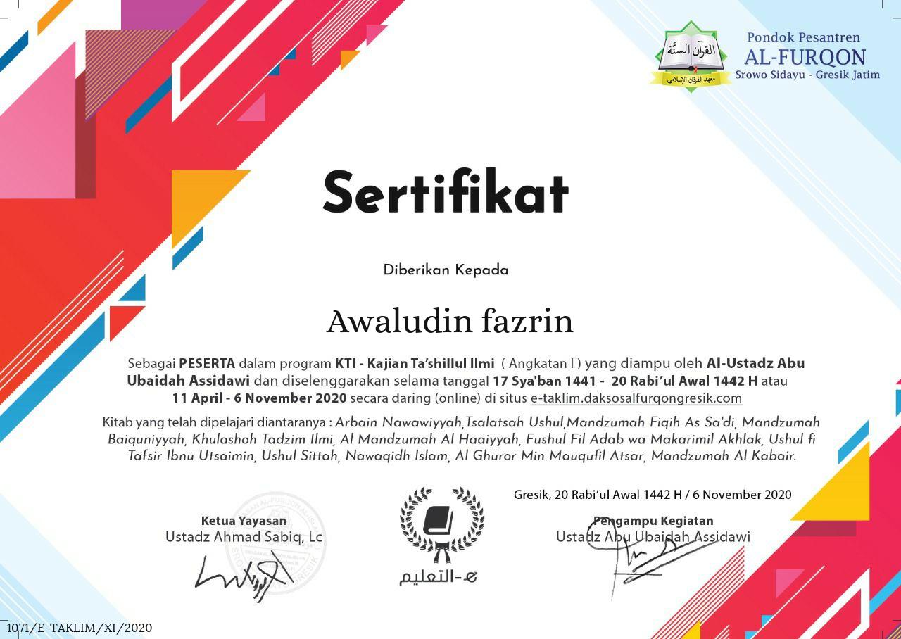 Dibimbing oleh Ustadz Abu Ubaidah Assidawi Hafidzahullah. Lihat Sertifikat